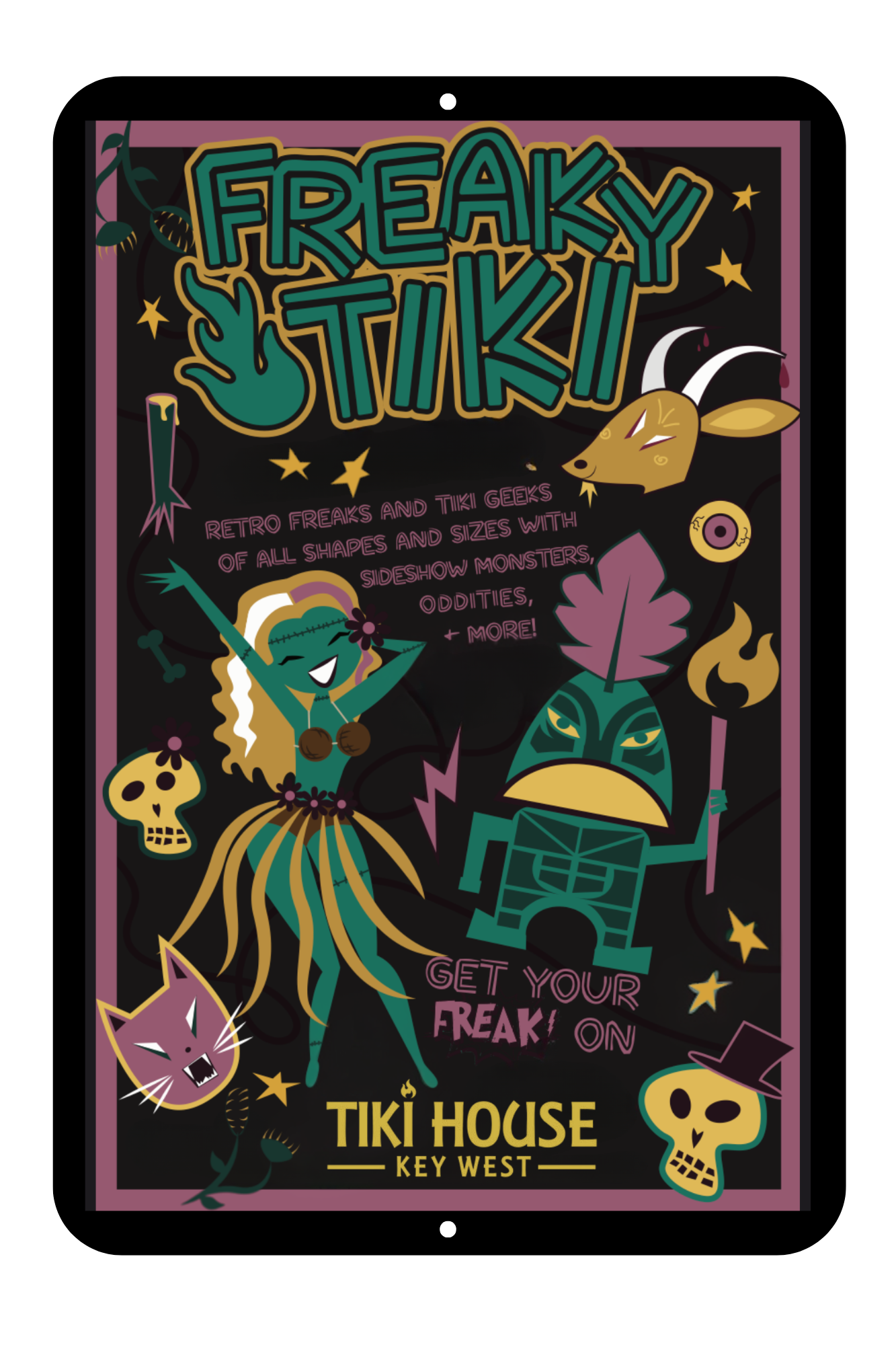 This Freaky Tiki metal bar sign adds a bold, island inspired statement to your home bar, tiki lounge, or man cave.